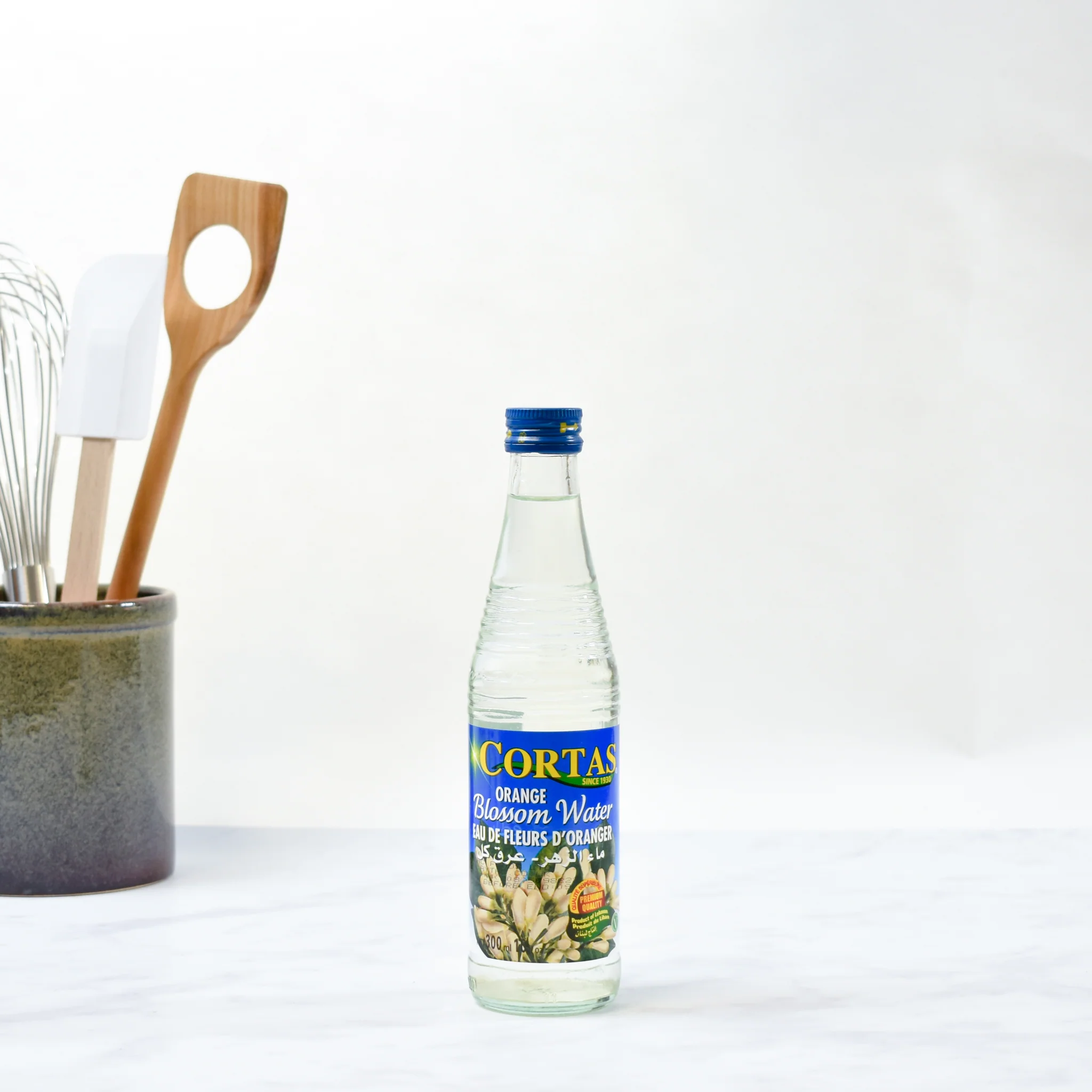 Orange blossom water, also known as orange flower water, ilma zahar or anthonero, is a clear liquid with intense, floral-orange aromas. This orange blossom water is made by boiling orange blossom flowers in water, and then capturing and condensing the steam.