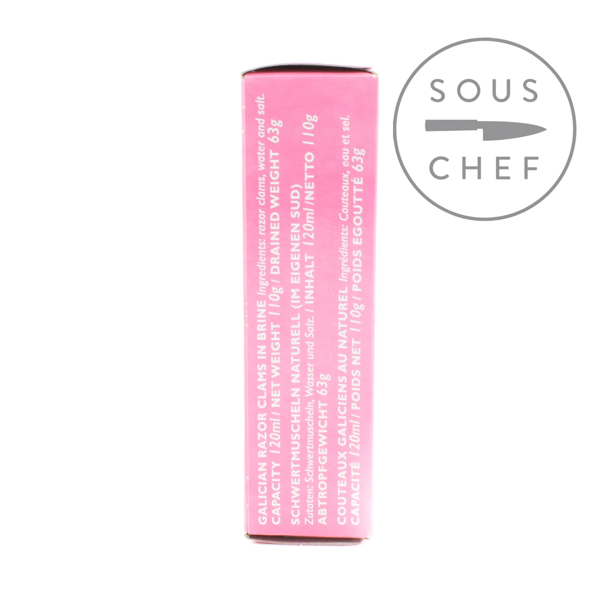 Product formulations and details may change. For the latest ingredients and allergen information always check product packaging prior to consumption. Ingredients: Razor clams (mollusc)(Galicia), water, salt.
